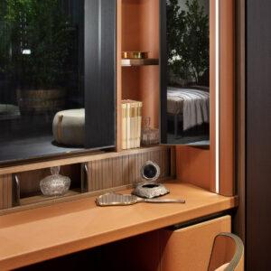 In sintesi, Eureka rappresenta un complemento d’arredo elegante e femminile, che si integra perfettamente all’interno di Armadio al Centimetro nella zona notte. Grazie alla sua versatilità e alla cura dei dettagli, questo vanity comunica uno stile di vita sofisticato e raffinato, che si esprime attraverso un glamour discreto.