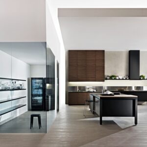 Nata nel 1994 dalla matita di Luca Meda, concentra nella struttura autoportante, brevettata da Dada, le funzioni principali di cottura e lavaggio. La nuova Banco ridefinisce i contrasti materici e privilegia il bianco e il nero.