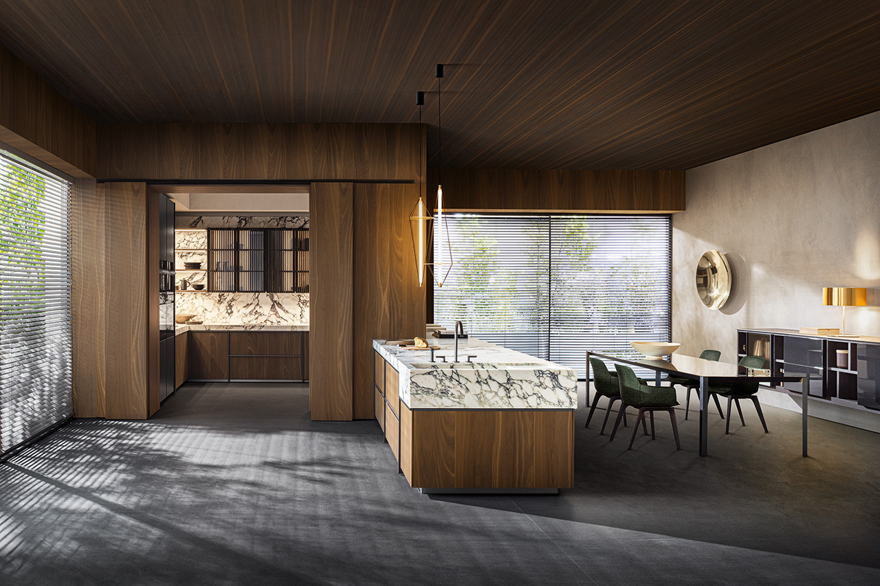 La cucina Ratio, disegnata da Vincent Van Duysen, si rinnova nella componibilità e nei materiali, mantenendo un carattere grafico e architettonico particolarmente marcato.