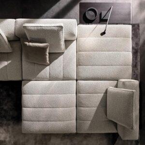La seduta monoblocco è particolarmente ergonomica e confortevole grazie all’uso di una tecnologia innovativa: il sistema a molle insacchettate si unisce allo strato di imbottitura in poliuretano a densità stratificate che conferiscono una consistente sensazione di morbidezza e accoglienza. Il sistema di sedute è composto da componenti singoli che animano lo spazio living: terminali, angolari, centrali, chaise-longue, permettendo l’uso sia più formale che quello di estremo relax.