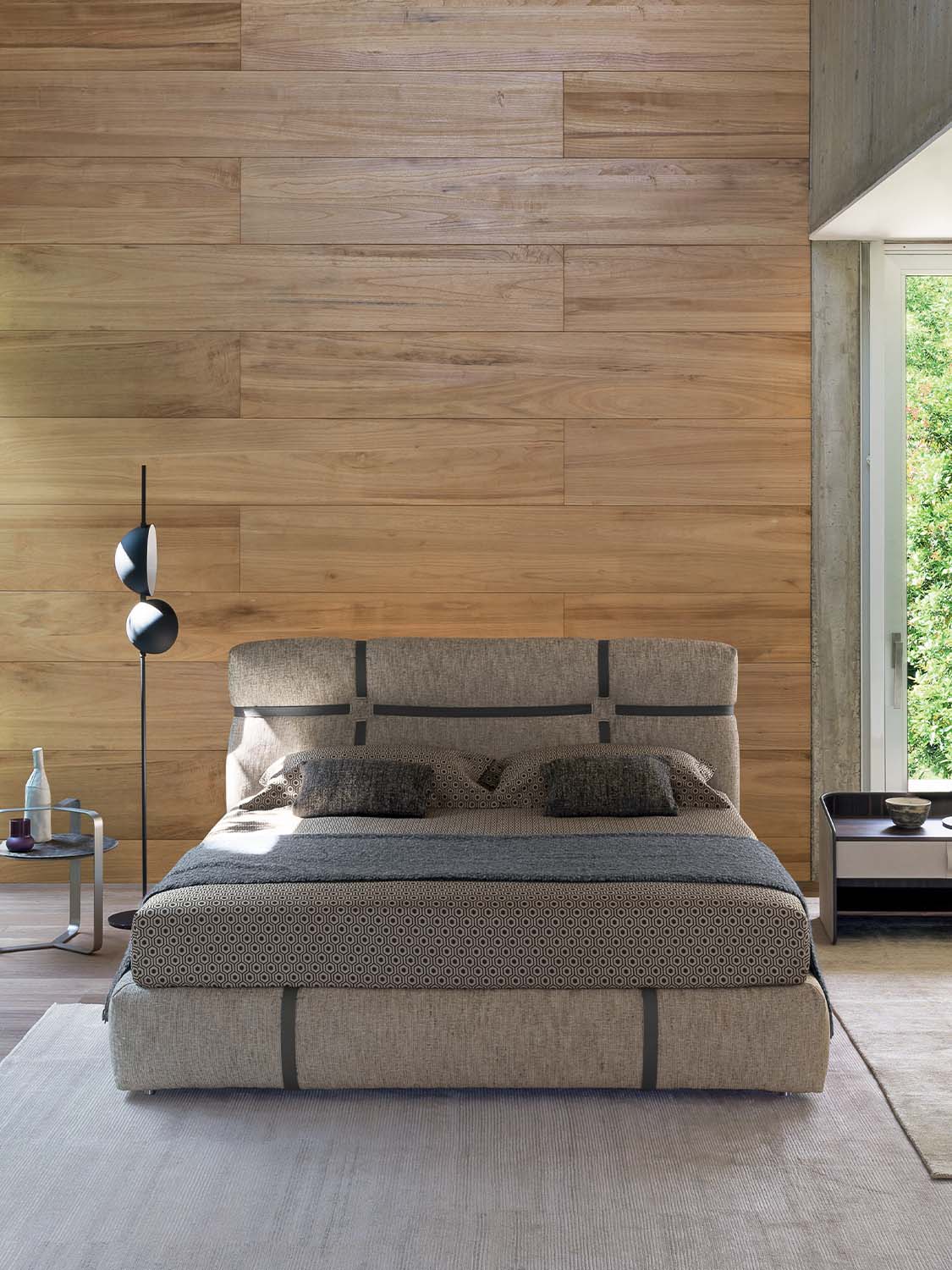 New Bond è un vero e proprio omaggio alla raffinata sartorialità italiana. La sua testata, con un particolare “gioco” di cinture e asole in pelle, è un dettaglio distintivo che richiama l’abilità artigianale di Flou. Il letto, ispirato alla celebre strada londinese, è disponibile con rivestimento in tessuto o pelle pieno fiore, in cui le cinture creano un piacevole contrasto o si fondono nella stessa nuance di colore. La base può essere scelta tra la base Leonardo, la base contenitore, la base fissa o la base con movimento elettrico. New Bond è un’opera d’arte da ammirare e utilizzare ogni giorno, dove la morbida imbottitura della testata e la raffinatezza unica della pelle si uniscono in perfetta armonia.
