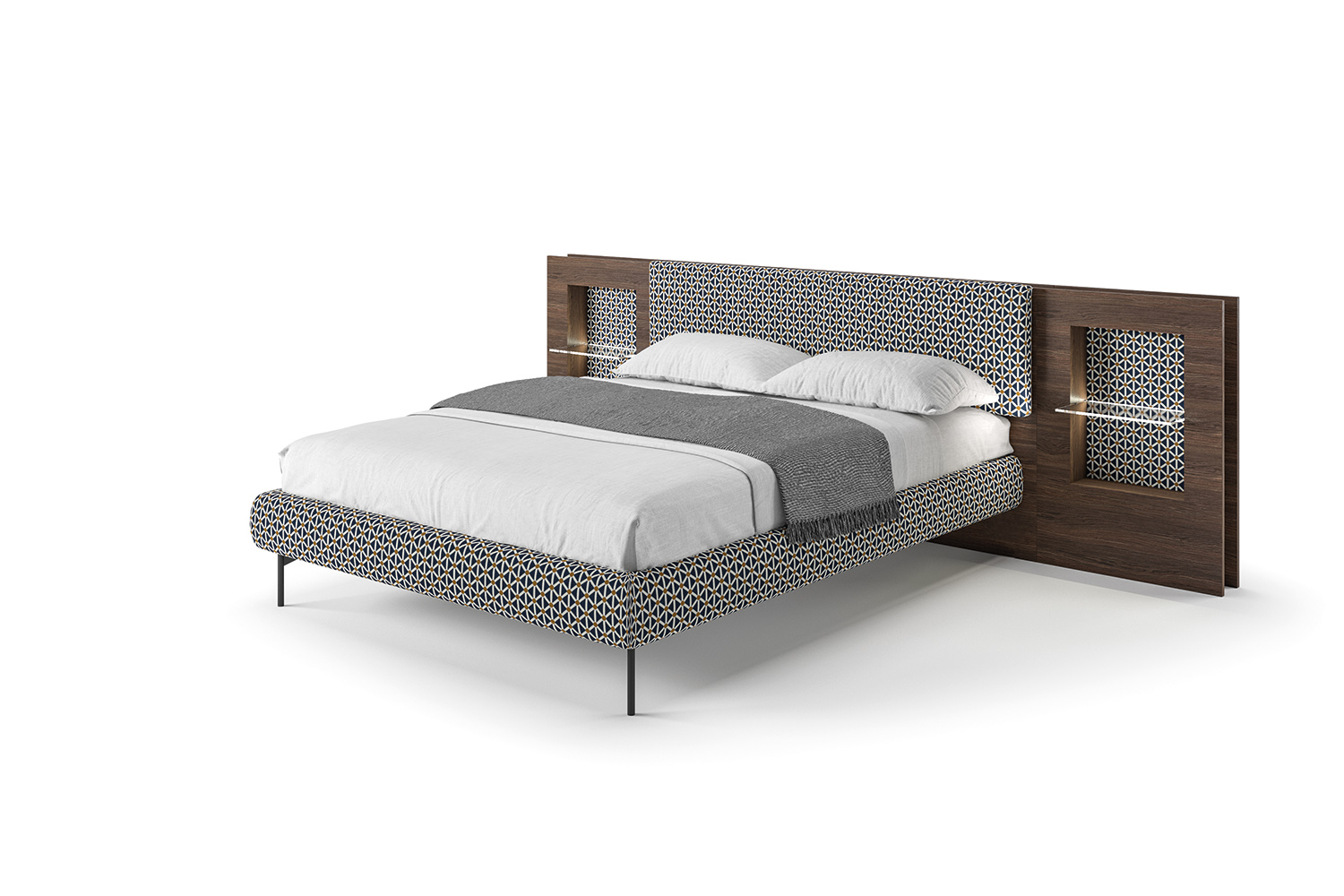 Grazie alla sua modularità, il sistema letto Plan realizzato da Tumidei si adatta ad ogni situazione di ambienti contract o domestici grazie al suo stile estremamente versatile. Di particolare interesse il giroletto, che può essere imbottito o in legno. Il modello presenta anche un piedino centrale in metallo che, insieme alle luci led inserite nella cornice in vetro, crea un magico senso di leggerezza e conferisce carattere al design. Il letto Plan è caratterizzato da una rigorosa geometria che si sposa perfettamente con la funzionalità e l’eleganza dei suoi elementi laterali in nicchia.