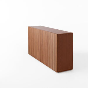 Leon gioca con un suggestivo effetto ottico che determina la sua caratteristica saliente: apparire diverso a seconda del punto di osservazione. Frontalmente le ante sono scandite da un motivo a righe verticali policrome ma, osservandole lateralmente, prevale l’omogeneità chiara o scura.