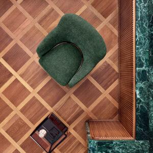 Appassionato da sempre al tema dell’arredo navale, Gio Ponti ne fece diretta esperienza in quattro transatlantici e due navi da crociera rinnovati o costruiti ex novo dopo la guerra, tra il 1949 e il 1951: Conte Grande, Africa, Oceania, Conte Biancamano, Andrea Doria e Giulio Cesare. Ponti progetta questa poltroncina con lievi varianti per le navi.