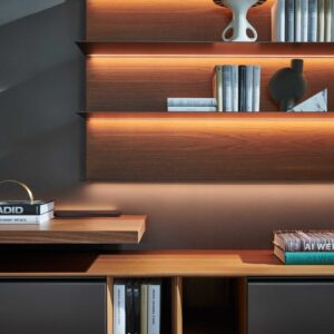 Pass-Word, design Dante Bonuccelli, il sistema living progettato per la casa contemporanea si evolve radicalmente per intercettare i nuovi modi di fruizione degli ambienti domestici marcati dalla presenza sempre più massiccia di sistemi multimediali di intrattenimento o relativi all’Home Working, che si affiancano a quelli più tradizionali come libri ed oggetti decorativi.