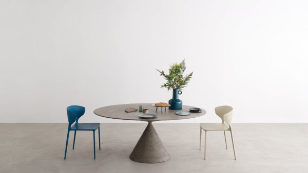 Due coni di forma diversa si incontrano ai propri vertici opposti sfidando la gravità in un equilibrio all’apparenza instabile, ma regalando forma al più classico dei tavoli rotondi. Clay è l’eccezione che diventa regola, come il design.