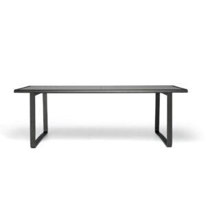 Il tavolo da pranzo della Collezione Timeout, con piano a doghe progettato per il deflusso dell’acqua, si presenta nelle versioni per 6 o 8 posti. La struttura riflette il motivo della fascia in alluminio color brunito, con profilo arrotondato e basi d’appoggio a slitta, integrandosi armoniosamente con le nuove collezioni per esterni di Molteni&C.